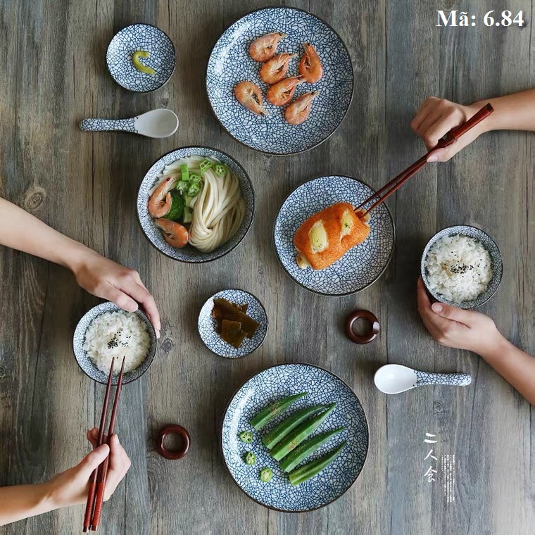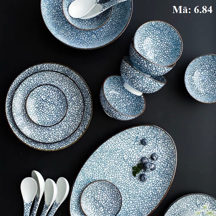 Bộ bát đĩa 22 món vết đá nứt màu xanh 6.84