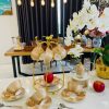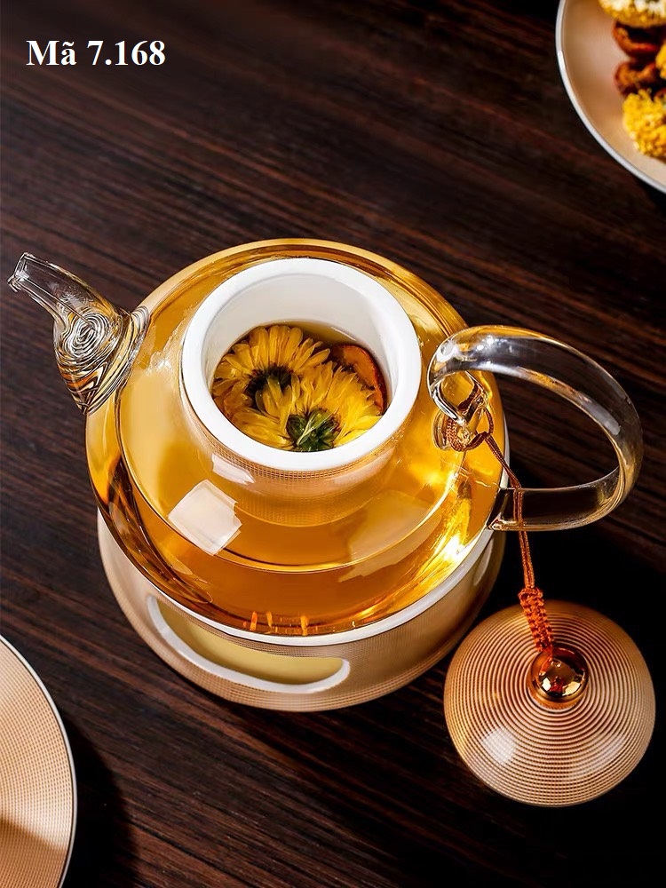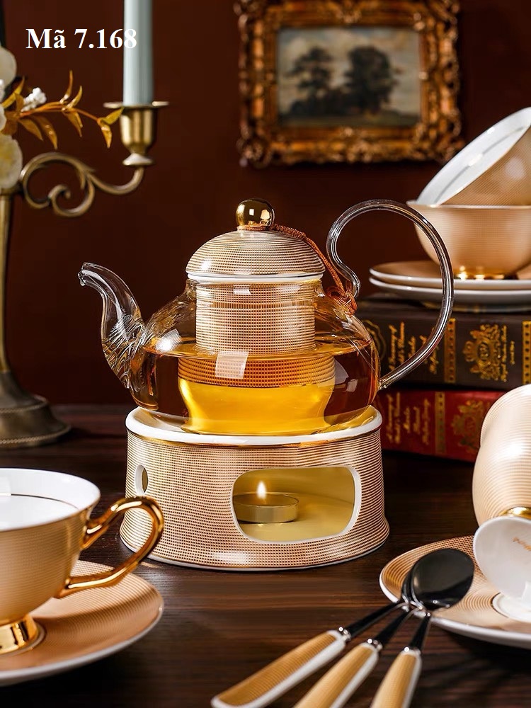 Bộ ấm chén đế nến vòng tròn be 7.168