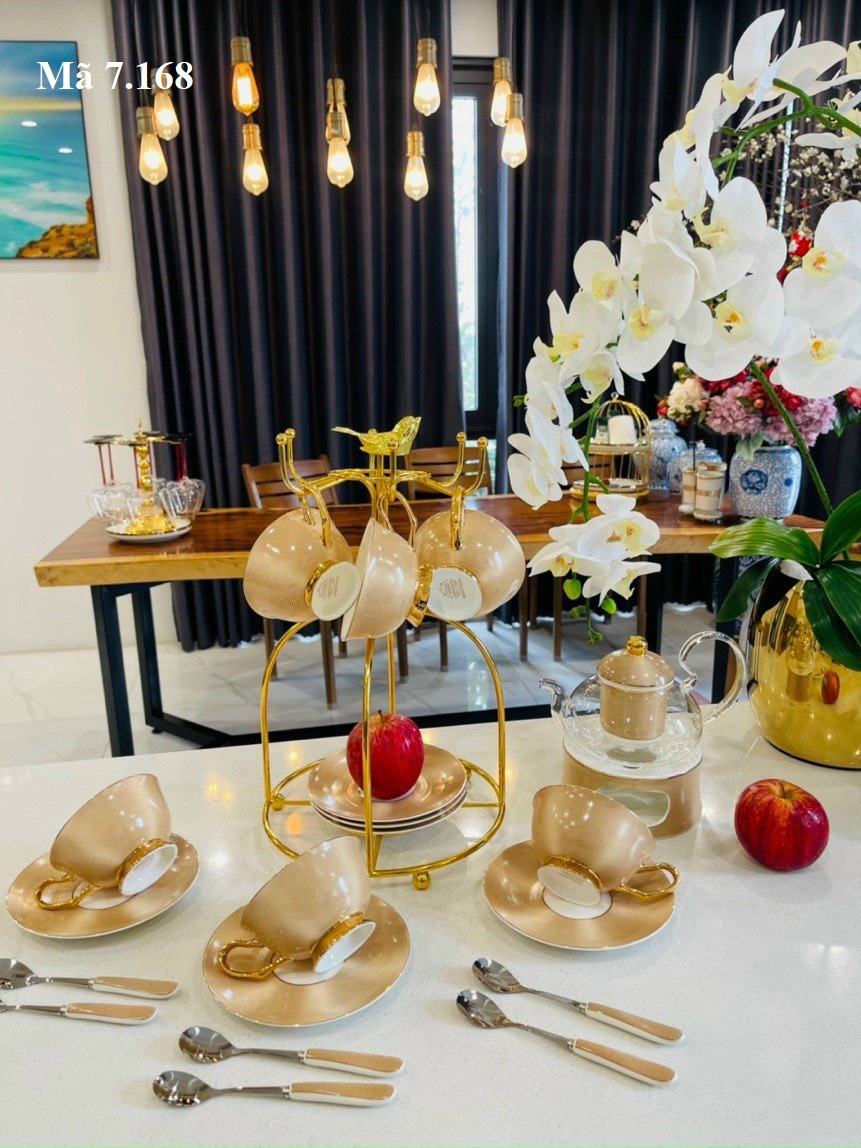 – Sản phẩm gồm có: 1 ấm thủy tinh, 1 đế đun, 6 chén, 6 đĩa lót, 6 thìa và được TẶNG giá treo cốc mạ vàng.