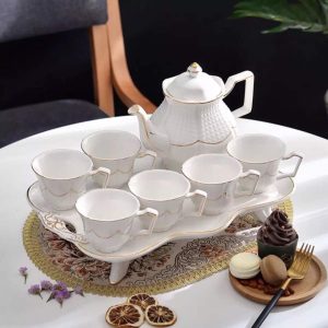 Bộ ấm chén viền vàng có khay hình chữ nhật có chân (ấm cao/ấm lùn) 7.13.1/7.13.2 - Ấm cao