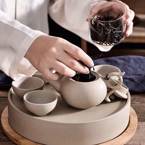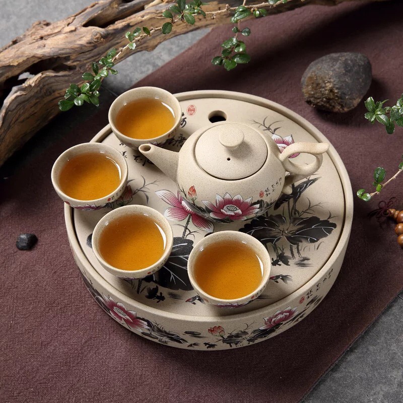 – Sản phẩm gồm có: 1 ấm, 5 chén, 1 khay tròn bằng sứ và 1 khay tròn bằng trúc.