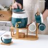 Bộ ấm chum giá đứng 4 chén màu xanh trắng 7.131