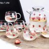 Bộ bình cốc thủy tinh họa tiết dâu tây (1 bình cao và 6 cốc có quai) 7.150