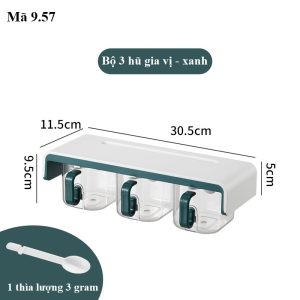 Set 3 hũ gia vị nắp liền kệ sinh tường 9.57 - Xanh