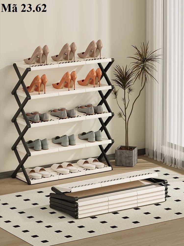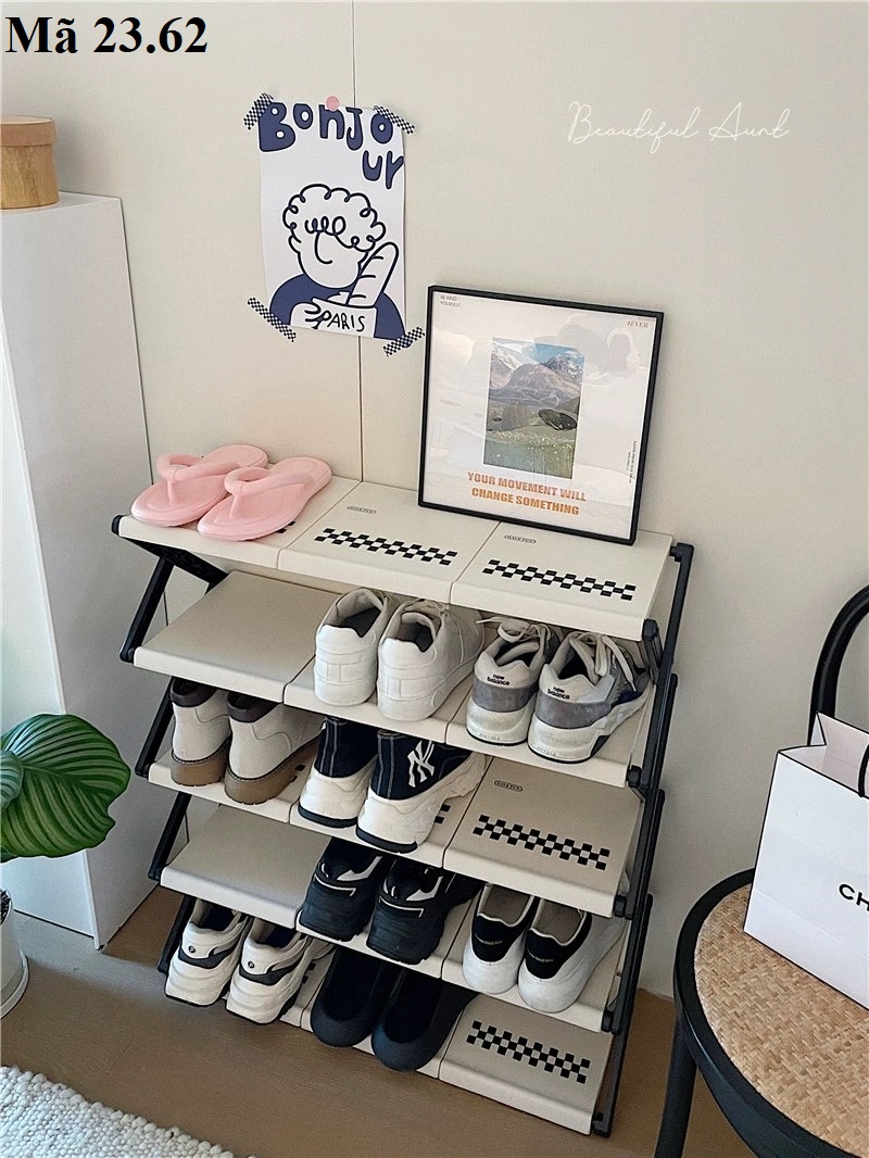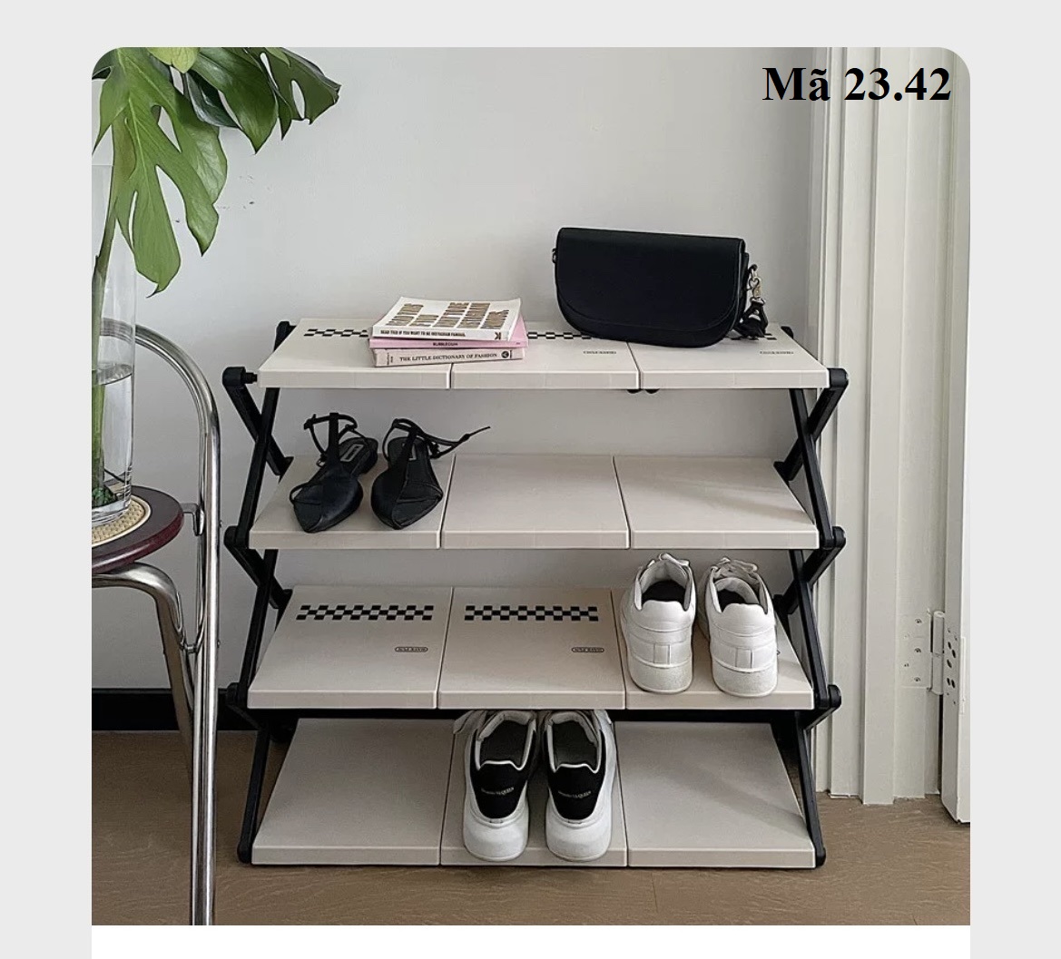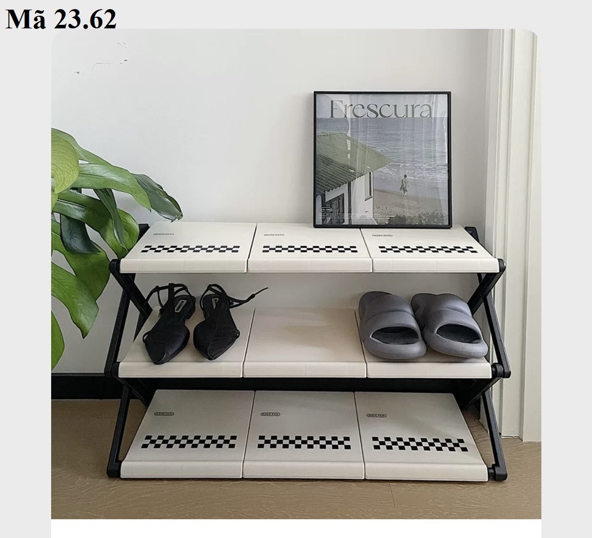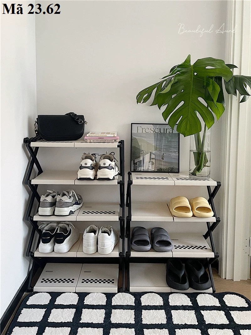 Kệ để dép chữ X nhiều tầng màu kem bằng nhựa PP 23.62