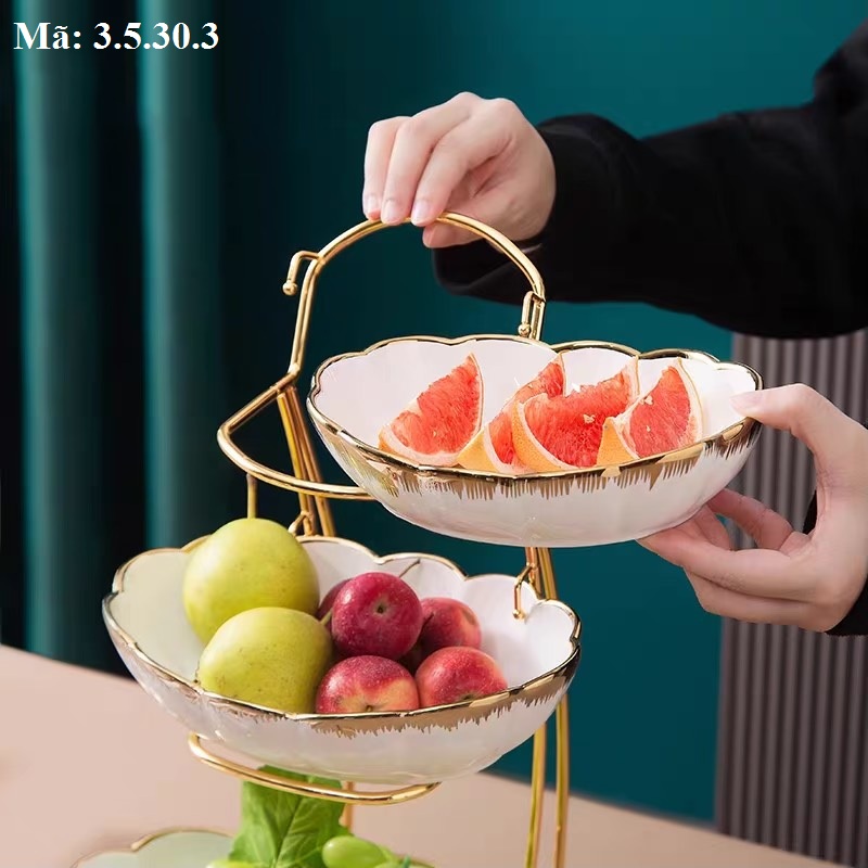 Khay 3 tầng giá sắt hoa cúc (VIỀN VÀNG) 3.5.30.3