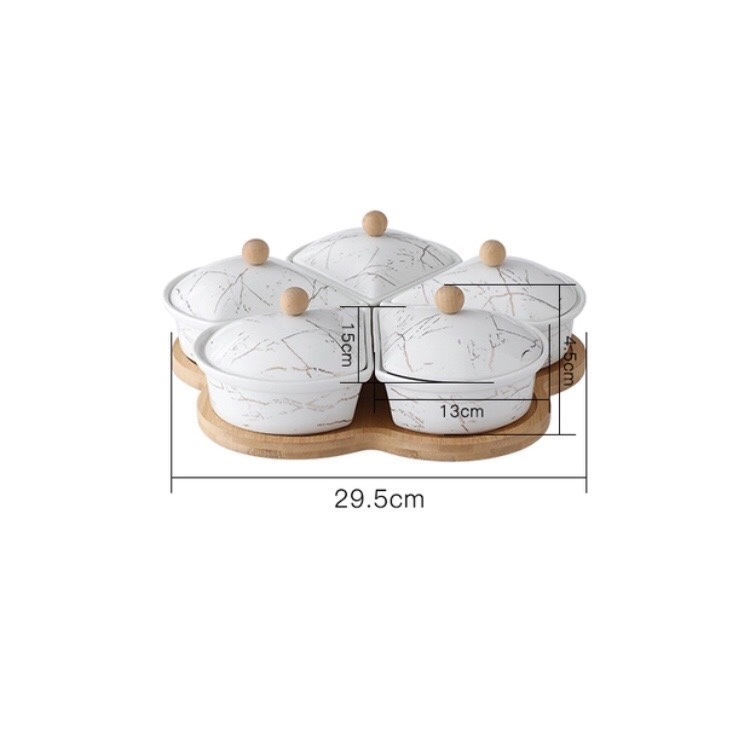 – Sản phẩm gồm có: 5 hũ sứ và 1 khay trúc.
