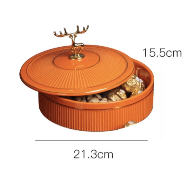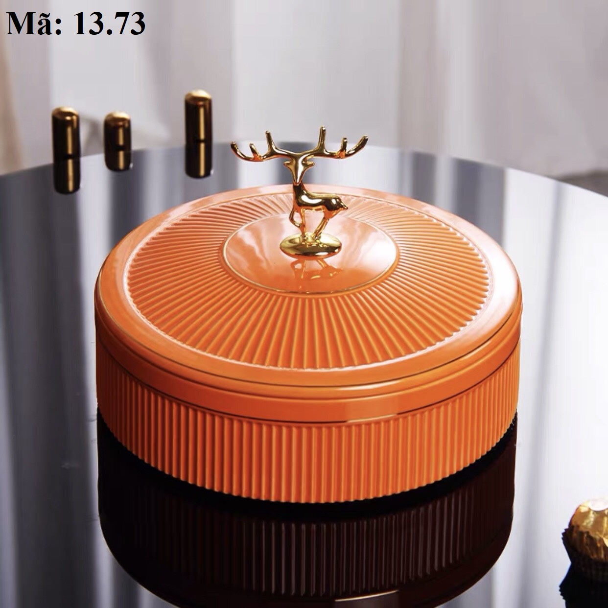 Khay mứt sứ núm hươu màu cam sọc 13.73