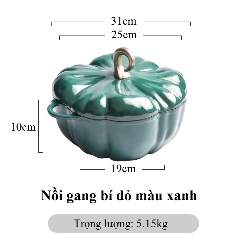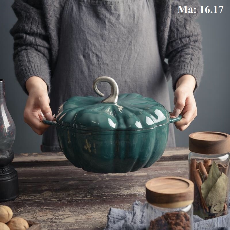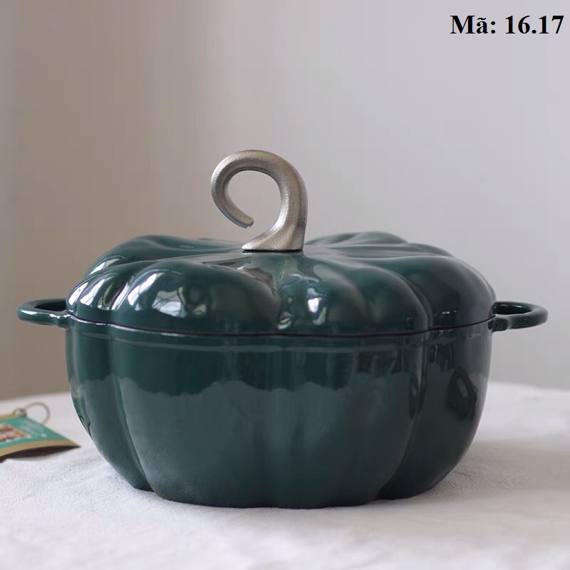 Nồi gang hình quả bí ngô màu xanh (hơi lỗi) 16.17