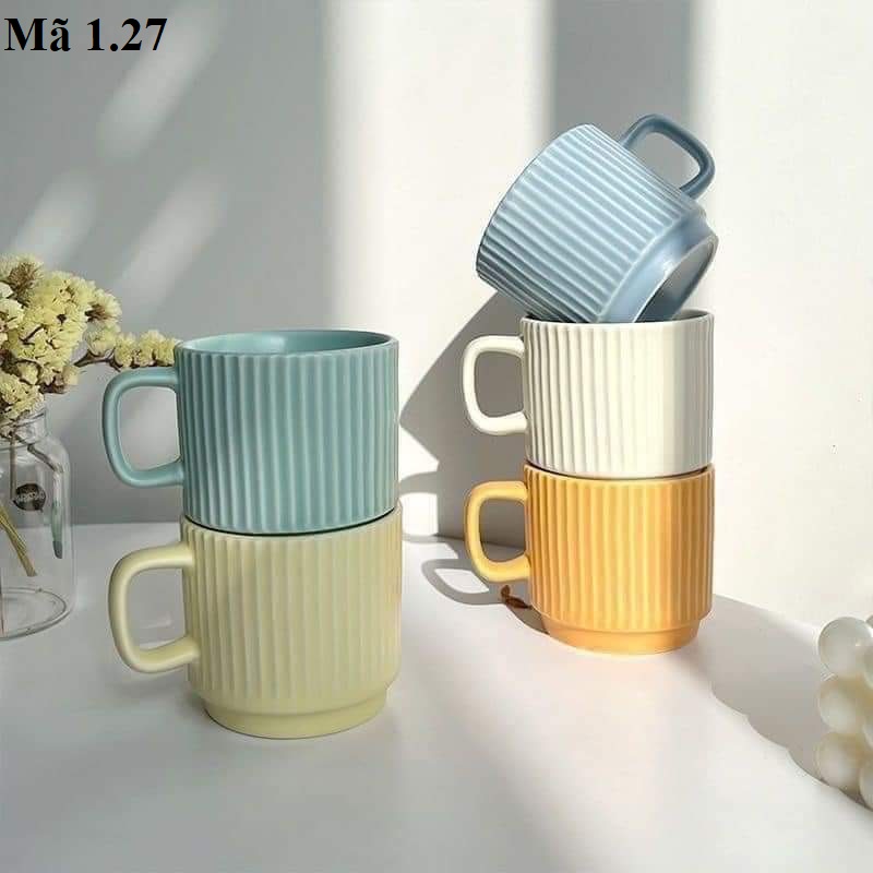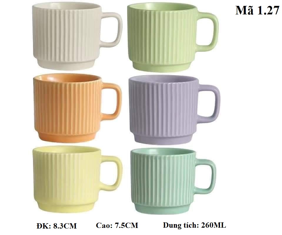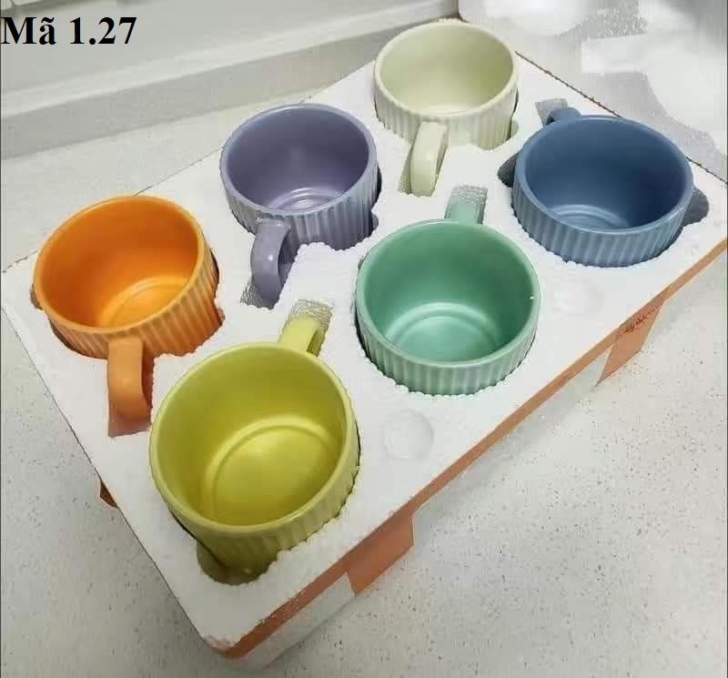 Set 6 cốc sứ gân sọc 6 màu 1.27